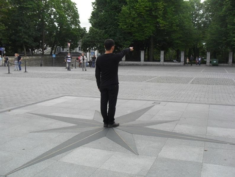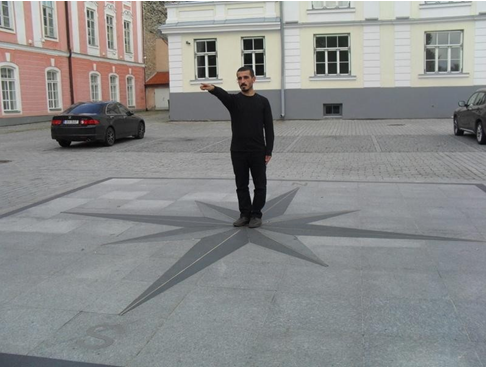 The performance “Target” was made in Tallinn, Estonia. It was made in front of the Estonian Parliament in town where there is a compass on the ground. With this performance, Seyitvan wanted to question the contradiction between the north and the south on a social, political, and economical level. While the north refers to wealth and democracy, the south always implies to wars, poverty, and struggle. Whereas the artist here targetted the south where civilization began. In the same way in Turkey, the south implies oil and trade but also the war. Therefore people always wanted to go down to the south to occupy. This performance shows the south as a targetted point.